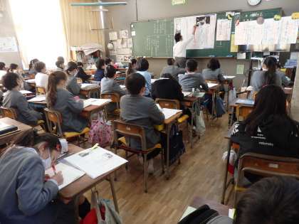 国語の授業です。登場人物の気持ちを丁寧に追いかけて、考えています。