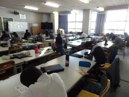 社会科の授業(3枚目)では、テストに取り組んでいます。