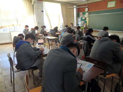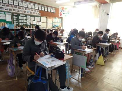 社会科のテストに黙々と取り組んでいます。