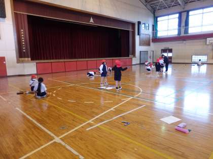 体育の授業です。体育館で、なわとびに取り組んでいます。
