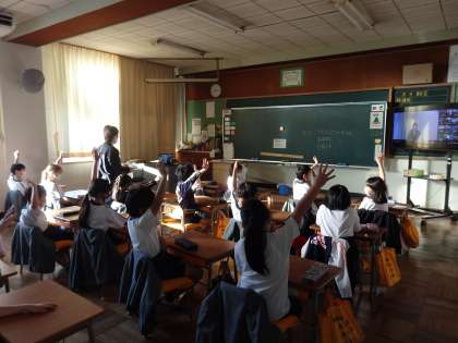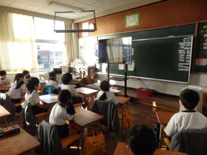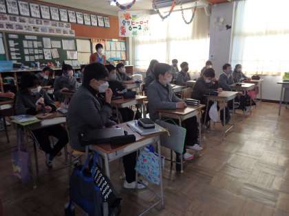 今回も、集合して話を聞くのではなく、各教室にオンラインで配信されるお話を聞く形となりました。