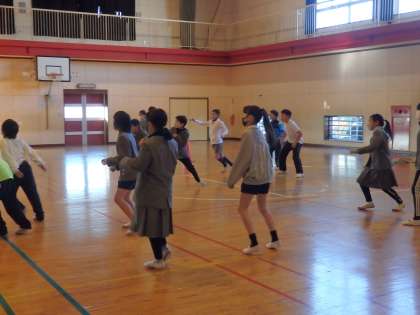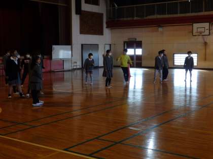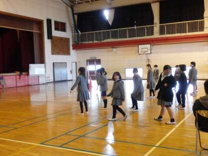 体育館で、3学期から転校してしまう友だちのお別れ会をやっています。