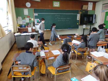 算数の授業です。プリントの学習を終え、先生に点検してもらったら、今度はカードを使って計算の練習します。