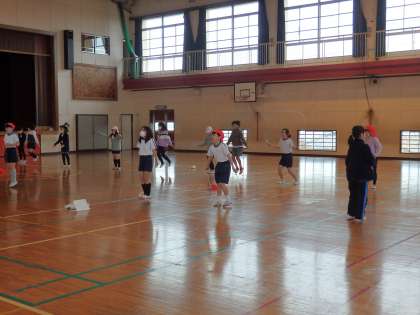 体育の授業です。なわとびに取り組んでいます。
