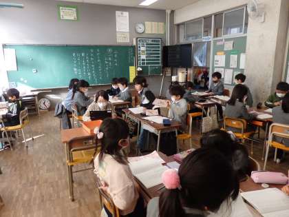 国語の授業です。「一年生へお知らせしよう」の学習です。