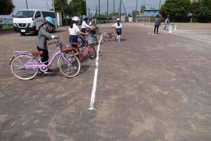 3年生は、自転車教室です。講話を聞いたり、正しい自転車の乗り方を練習したりしました。