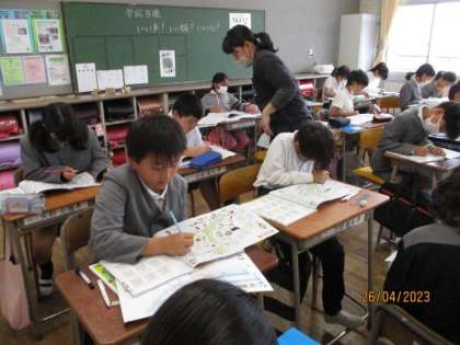 4年生の様子 公開日 2023/04/26 更新日 2023/04/26 学校生活 4年生は社会科の授業で、県の特産品のかかれた地図帳を見ながら、県名を書き入れる作業を熱心に進めていました。 いいね(0)