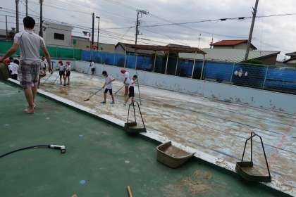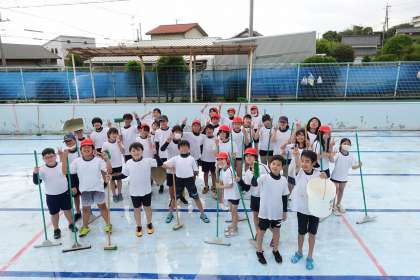 6年生が最上級生としてプール清掃をしました。最初はとてもきたなかったプールでしたが、6年生が協力して磨き上げたので最後の方はとてもきれいになりました。本当にありがとうございました。