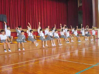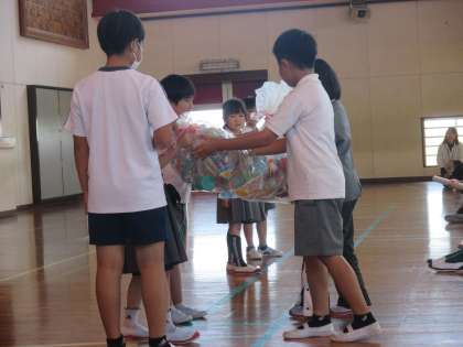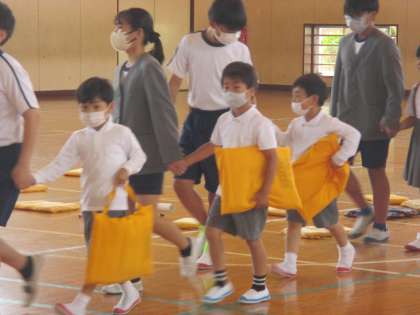 昼休みに、1年生を迎える会が行われました。2年生以上が待っている体育館に、1年生が6年生と手をつないで入場しました。「浮島小学校クイズ」、各学年からのプレゼント渡しなどを行い、笑顔いっぱいのあたたかな会となりました。