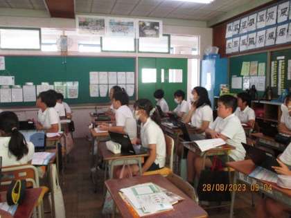 6年生は読書感想文の書き方の最終確認をしました。1学期に下書きしていた資料を基に、起承転結のある感想文を書こうとクロムブックに向かって頑張っていました。