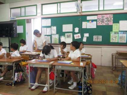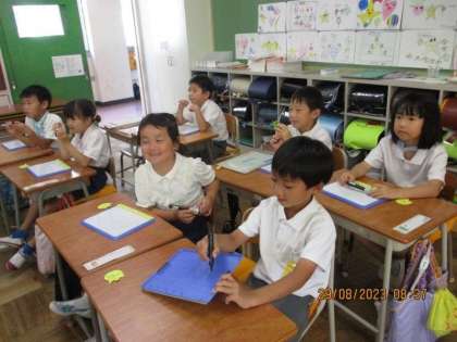 生活科の授業で、楽寿園に行くバスの中でのレクについて考えました。ゲーム、歌、動物クイズなど楽しい案が出されました。