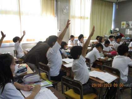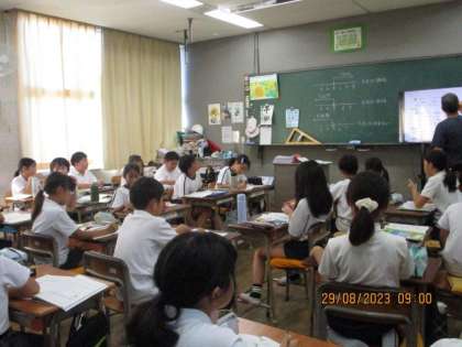 4年生は算数で、概数の復習をしました。約何千、約何万などを繰り返し練習しました。