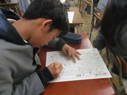 6年生は、漢字のプリントに取り組みました。迷路のような中から6年生で習った文字を集中して見つけていました。