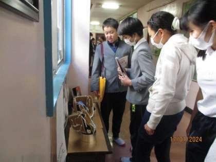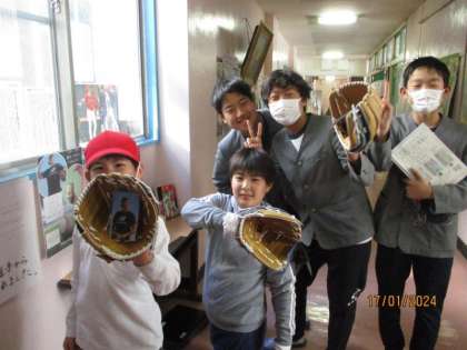待ちに待った大谷選手からのグローブが、今日届きました。子供たちは、廊下に展示してあるグローブを眺めたり、触ったり、手にはめたりしていました。