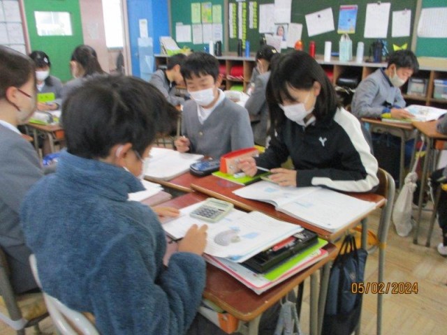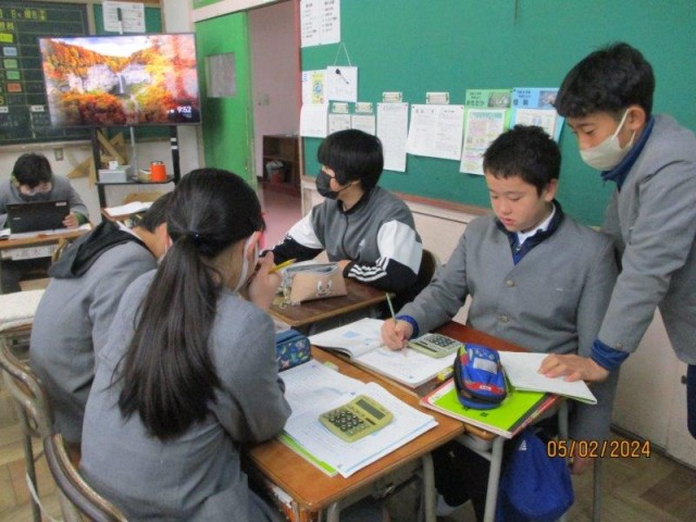 6年生の様子 公開日 2024/02/05 更新日 2024/02/05 学校生活 6年生は算数の授業で、まとめの問題に集中して取り組みました。分からない所を確かめ合う場面も多く見られました。難しい問題に集中して取り組む姿が素晴らしかったです。 いいね(0)