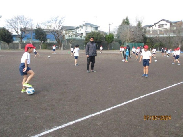 今日は、4年生のアスル全力教室が行われました。講師の先生の話をしっかり聴いて、サッカーの基本を教えてもらったり、試合をしたりして、楽しみました。