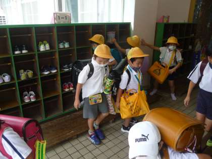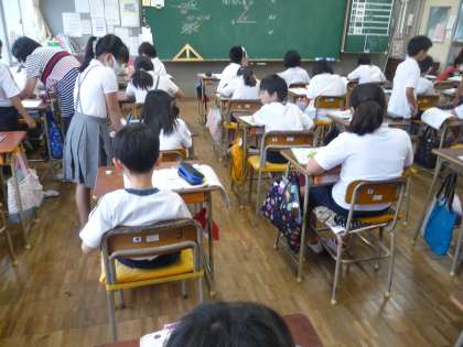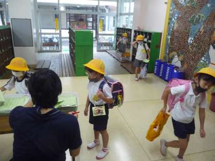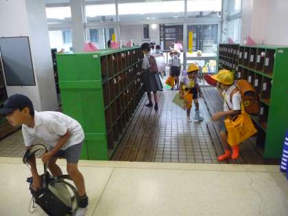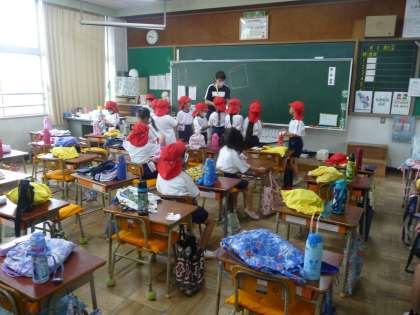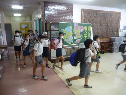 5時間目が終わって、全校児童一斉に下校です。