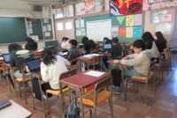 5年生の社会の授業にトヨタ自動車の方が来てくださいました。教室での映像による講義...
