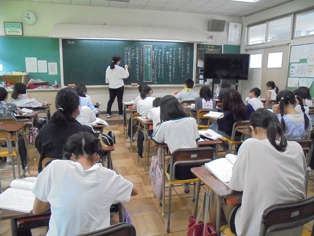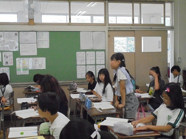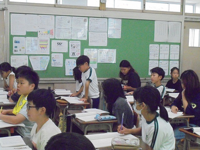 「注文の多い料理店」の中で、読み手にミスリードを誘うような工夫された表現を探し、見つけたことを発表して共有していました。黒板に書き切れない位、たくさんの意見が出ました。同じ言葉であっても、山猫と2人の紳士を入れ替えて読むと、全く違う意味なるおもしろさに気付くことができました。