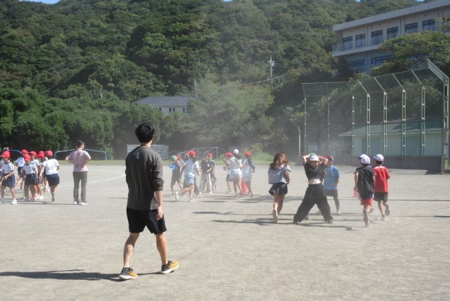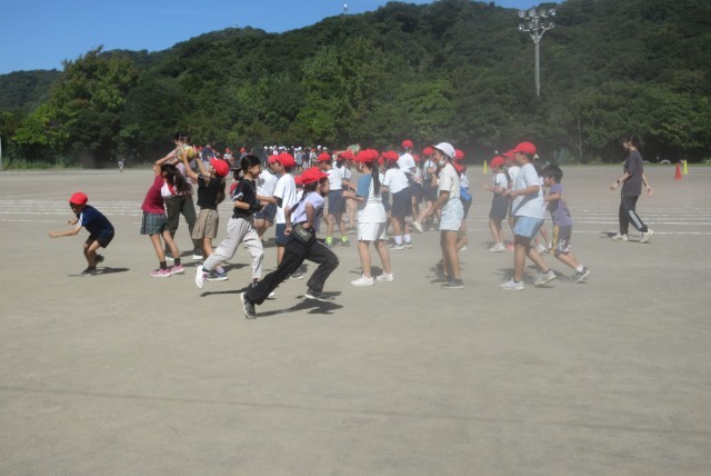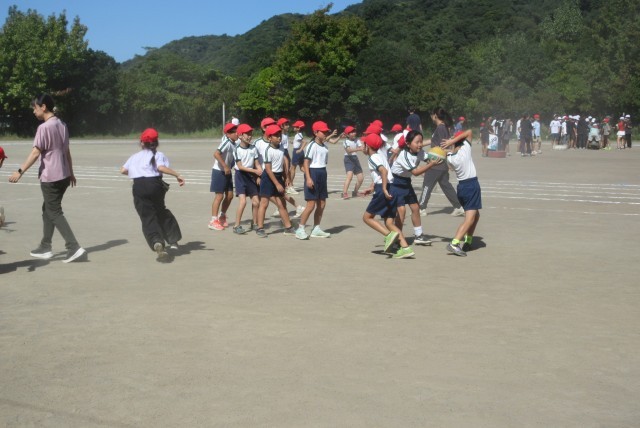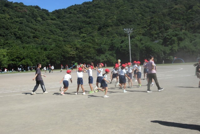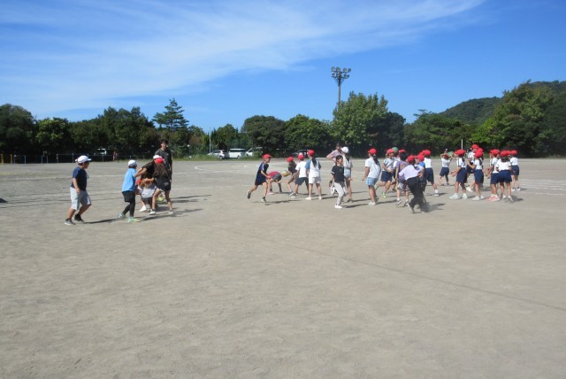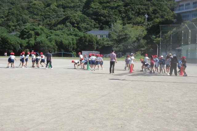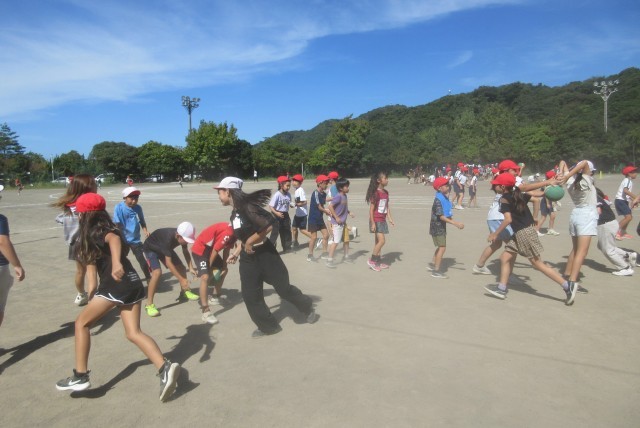 4年生は先週からいち早く運動会の団体競技の練習を始めました。