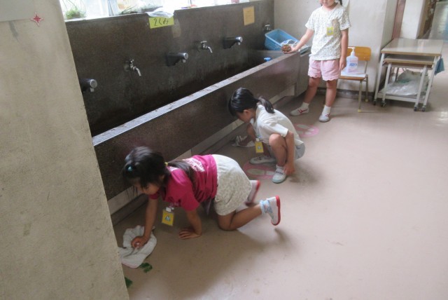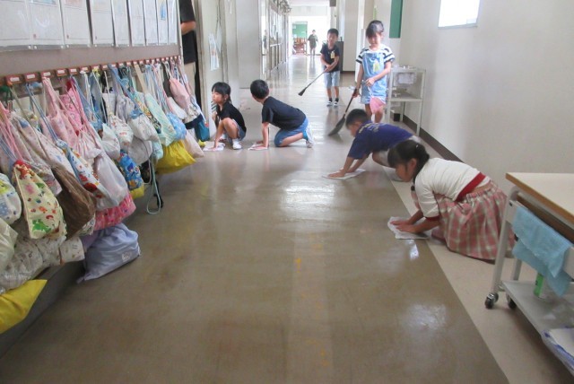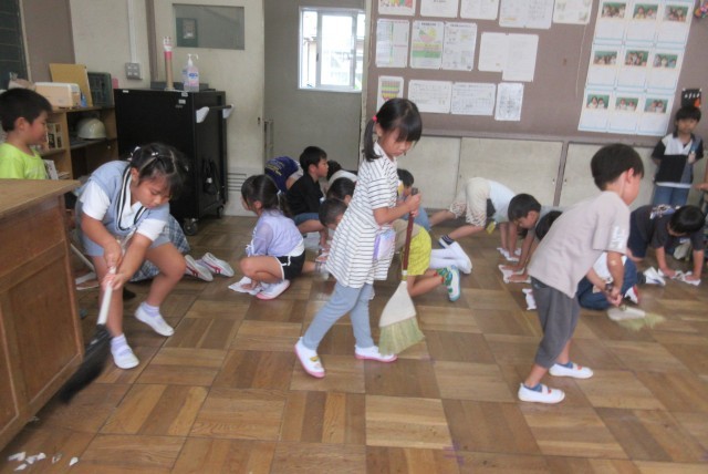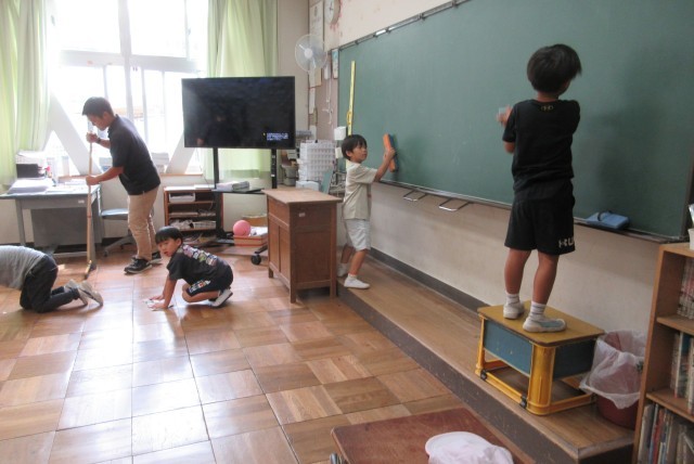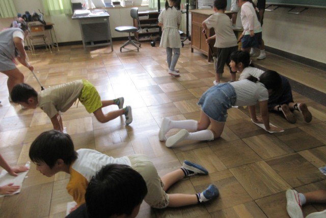ほうき、ぞうきん、流し、黒板、机運び…とそれぞれの分担に分かれて頑張っています。