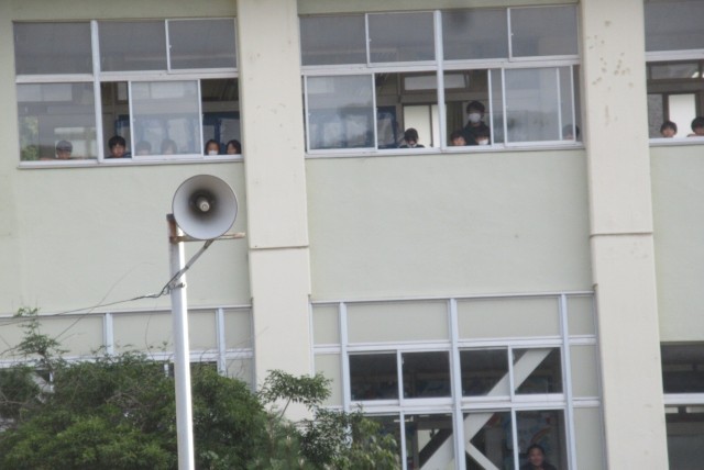 校舎からは6年生の素晴らしい態度に下級生が見とれていました。