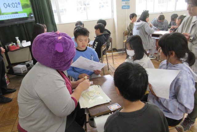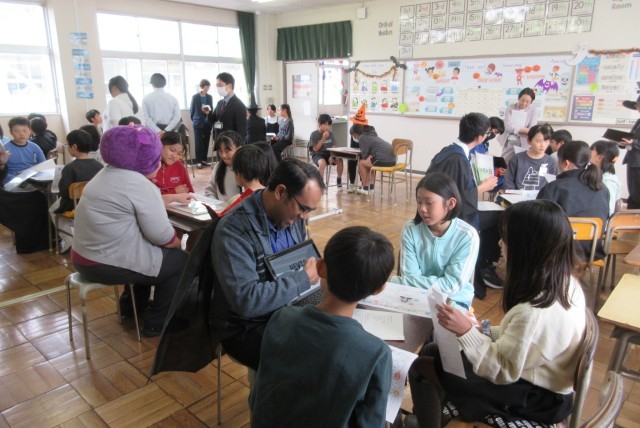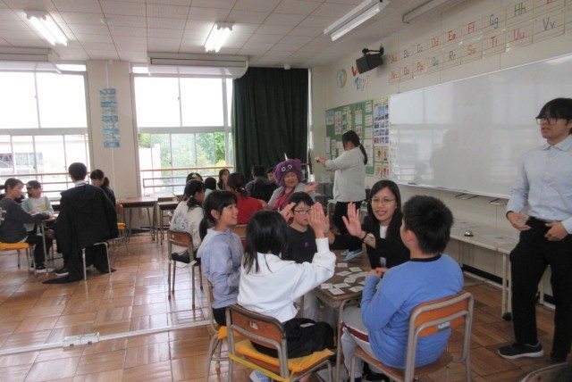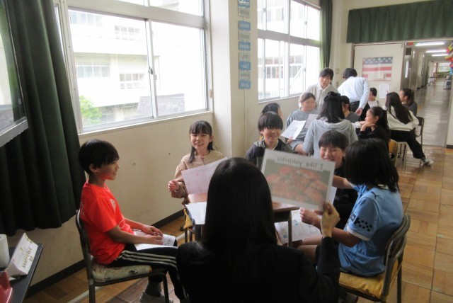 5年生の英語の時間に市内ALTが10人来校し、市教委主催「English Day」を開催していただきました。