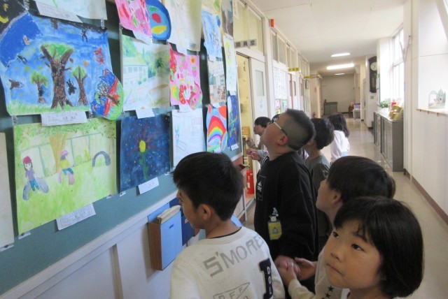 展示され、その他の作品は、各教室廊下等に飾られます。