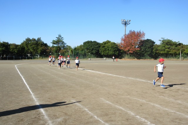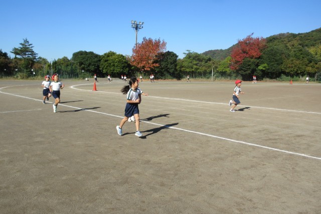 冬の体力作りの一つとして、かけ足運動に取り組んでいます。