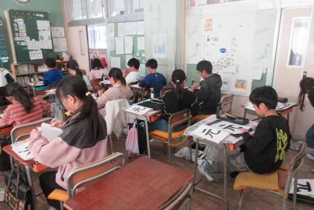 道具の準備もしっかりでき、落ち着いて字を書いたり、自分で手本と比べたりと