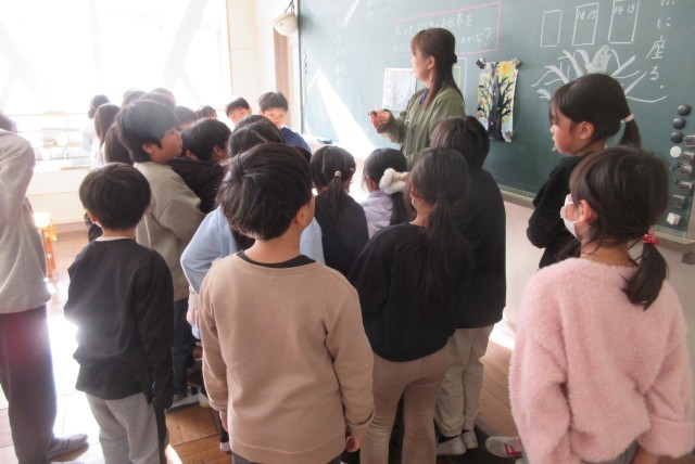 モチモチの木の題材となったトチノキの実を見せてもらって、子供たちは