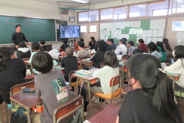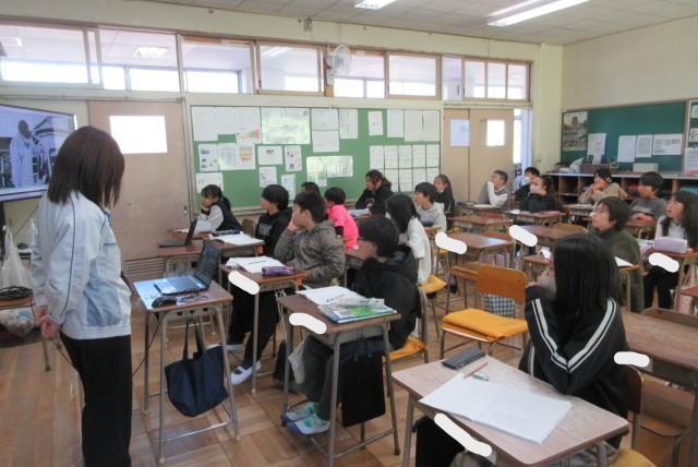 教室での映像による講義には、「へえー。そうだったのかあ」などと