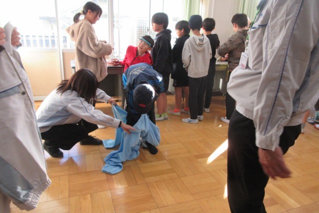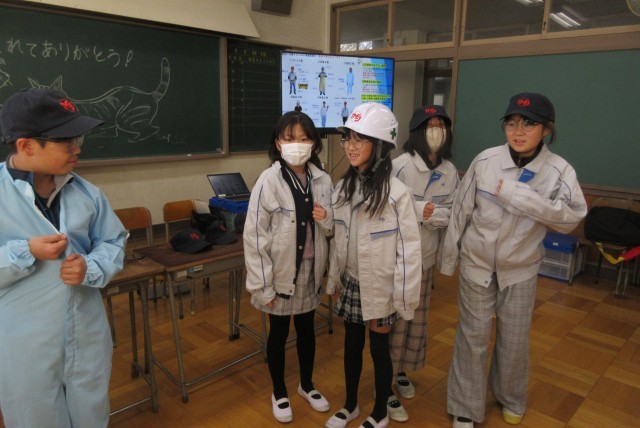 作業服や道具なども貸していただき、身に付けた子供たちは