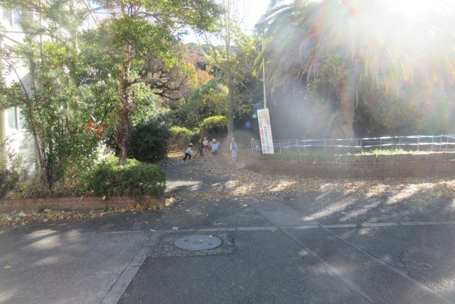 最近は校門に続く坂道の先にあるいちょうの木やその周辺にある落ち葉で