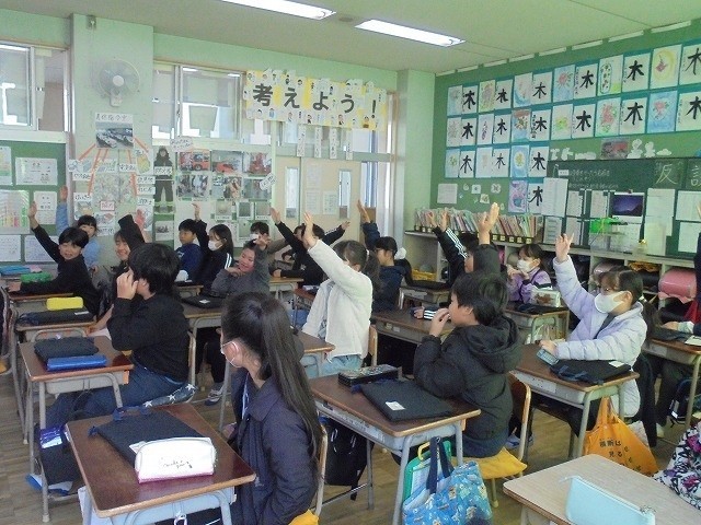 社会の時間に、交通事故現場の資料を見た子供たちは、「交通事故が起きたら、誰が何をしているのかな」という疑問をもちました。資料をよく見ると、警察官だけでなく消防隊や救急隊も現場に来ていることが分かります。「事故を起こした車から火が出たらすぐに消せるように、消防隊がきているんじゃないかな」と、これまでに学習したことを生かして、いろいろな意見を発表していました。