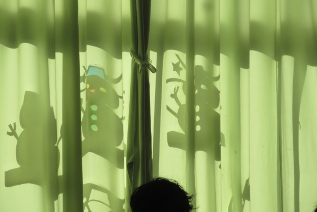 実際に日光をつかってカーテン越しにどのように見えるかやりながら