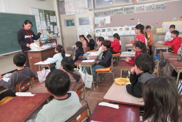 「『一年間ありがとうございます』ってお世話になった人に書くんだよ」「じゃあ、お母さんに書こっ」笑