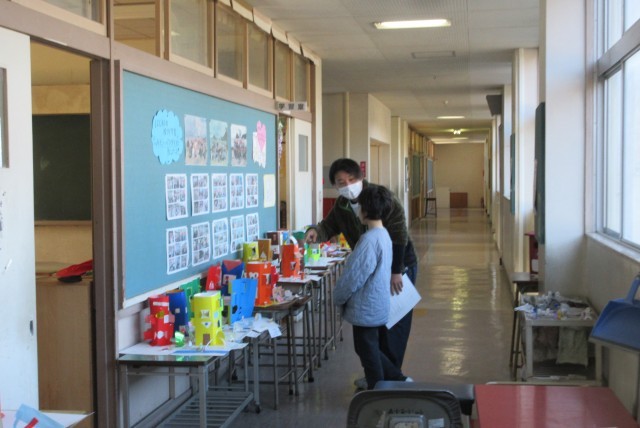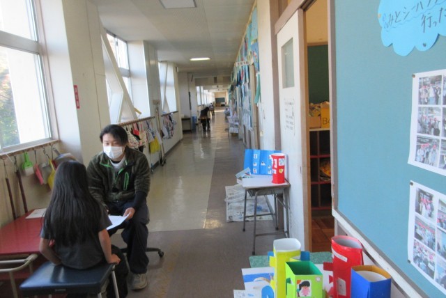 図工の作品を見ながら丁寧に通知表の内容について話す場面もありました。
