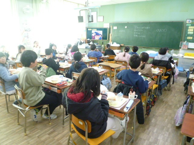 給食時間では、給食の歴史についての動画を視聴しました。
