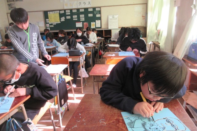 熱心に彫ったり、描いたりしていて、出来上がりが楽しみです。
