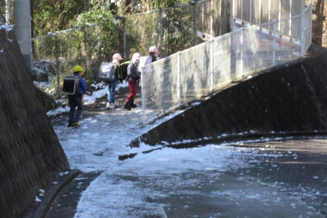校内でも玄関までのアスファルトに積もった雪で滑る子もいました。