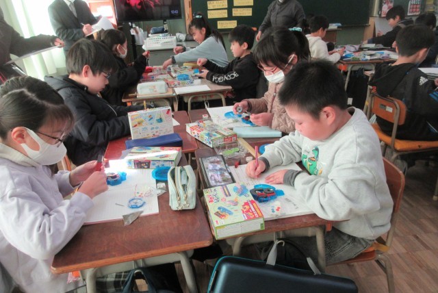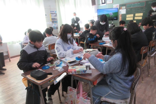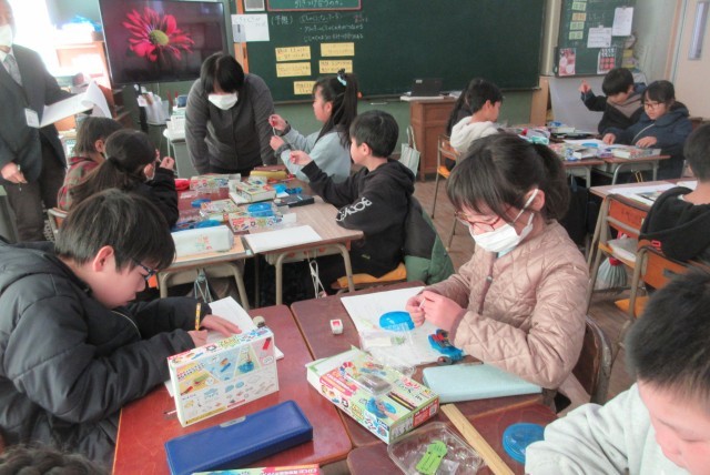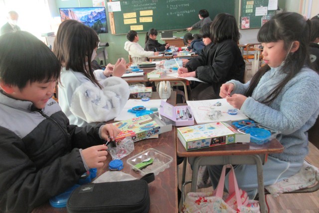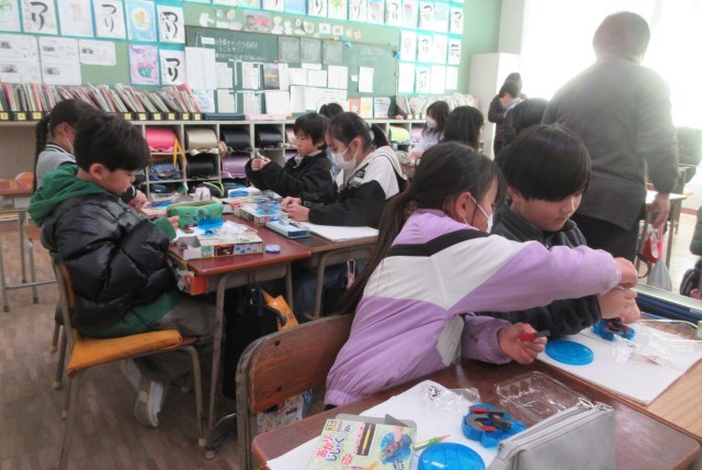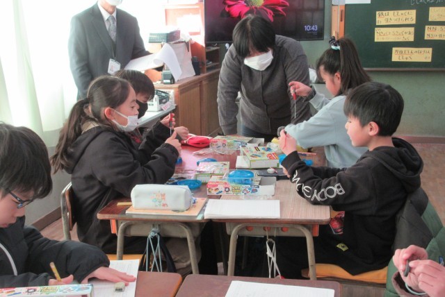 どうして直接じしゃくについていないクリップや釘がつくのか、みんなで考えました。