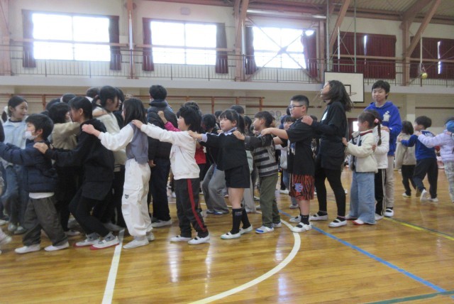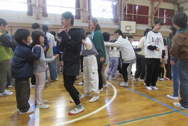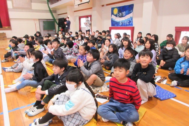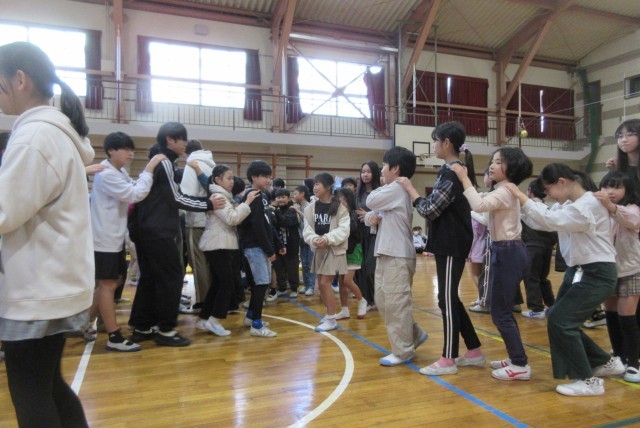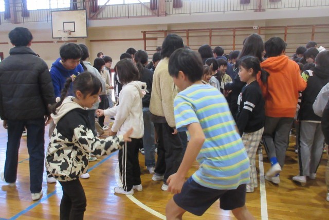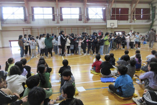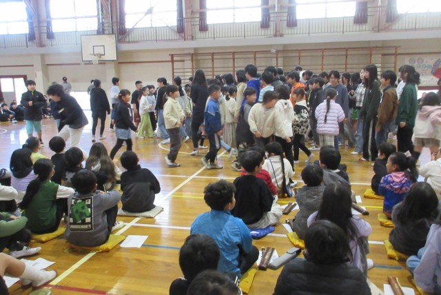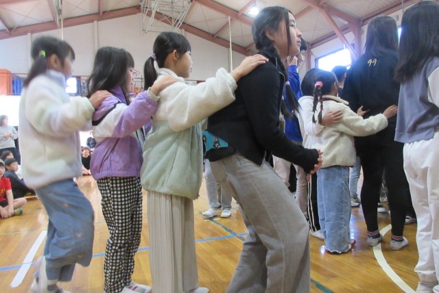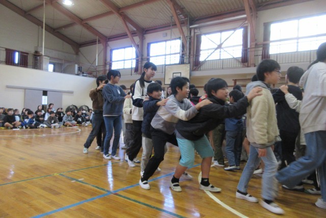 6年生を送る会で2年生はじゃんけん列車を6年生とやりました。