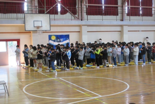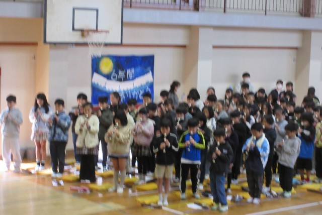6年生を送る会で3年生は6年生と一緒にリコーダー演奏をしました。