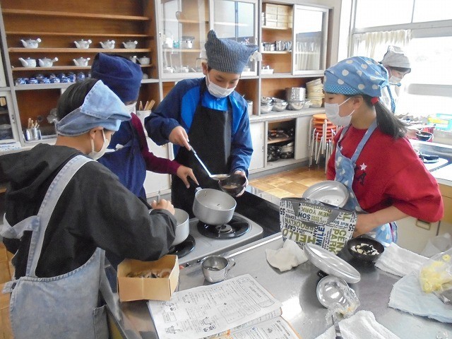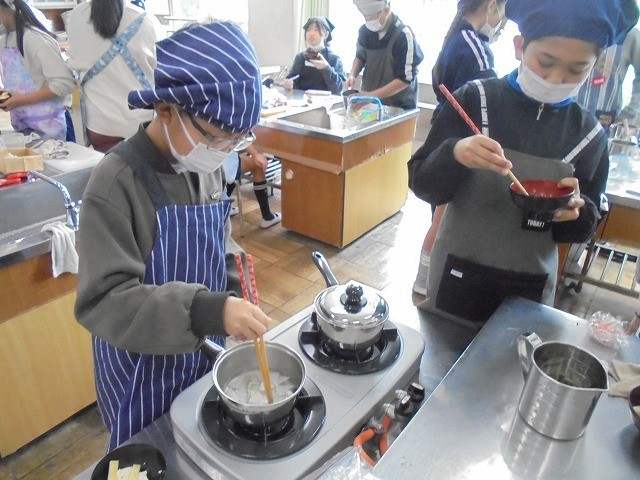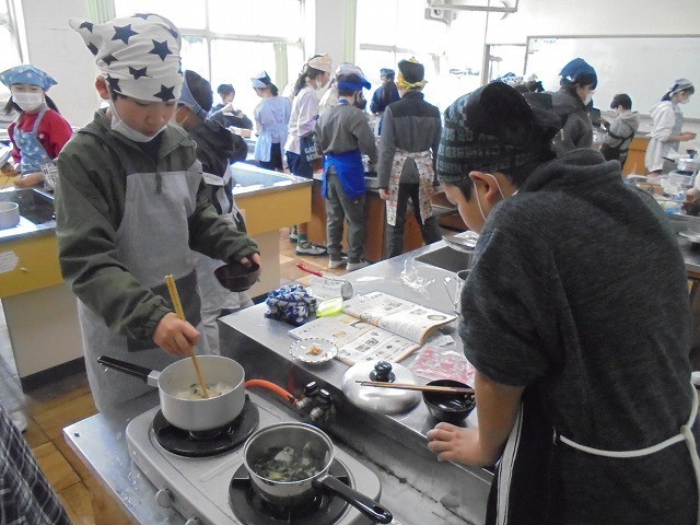 5年 家庭科「調理実習(味噌汁作り)」