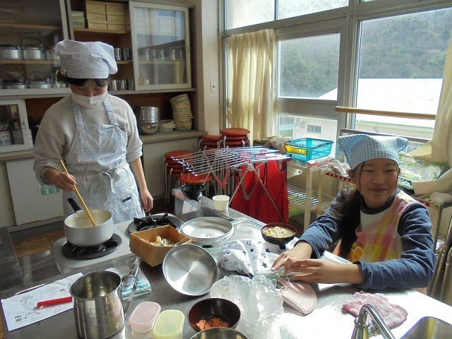 先日、5年生が調理実習を行いました。自分が選んだ具材を持参して、一人一人が自分の味噌汁を作りました。出汁は煮干しからとり、具沢山の美味しそうな味噌汁が出来上がりました。「どれから煮たらいいかな」「そろそろ味噌を入れるタイミングかな」等と、自分で考えながら調理していました。