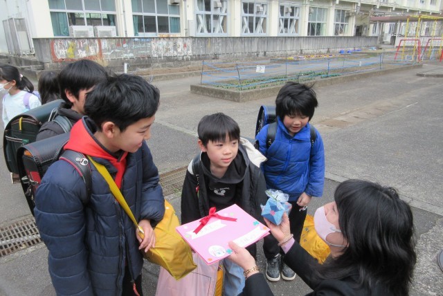 その後、下校時の校門にもお手紙と育てた花の種を持ってきてくれました。