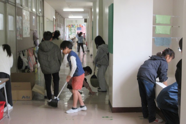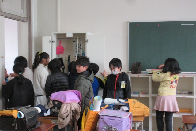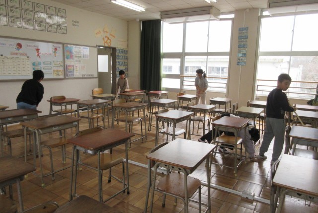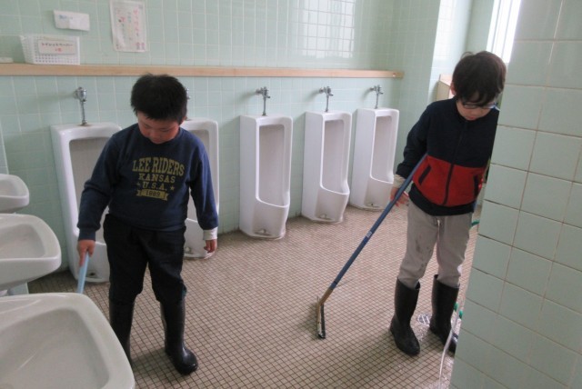 3年生は、机を出してワックスぬりをしたり、トイレや特別教室の大掃除をしたり