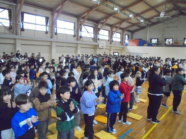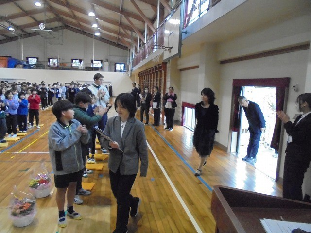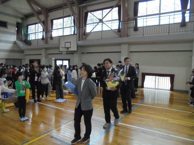 代表の児童から花束が贈られました。大きな拍手に「今までありがとうございました。」という感謝の気持ちが込められているようでした。