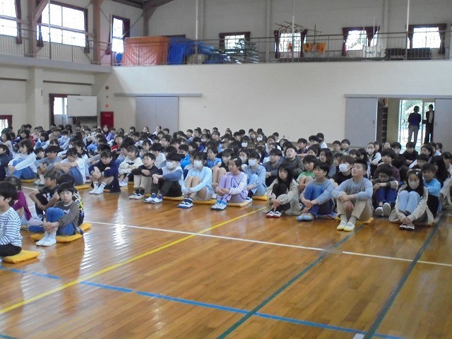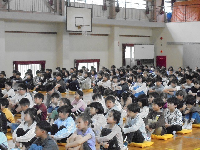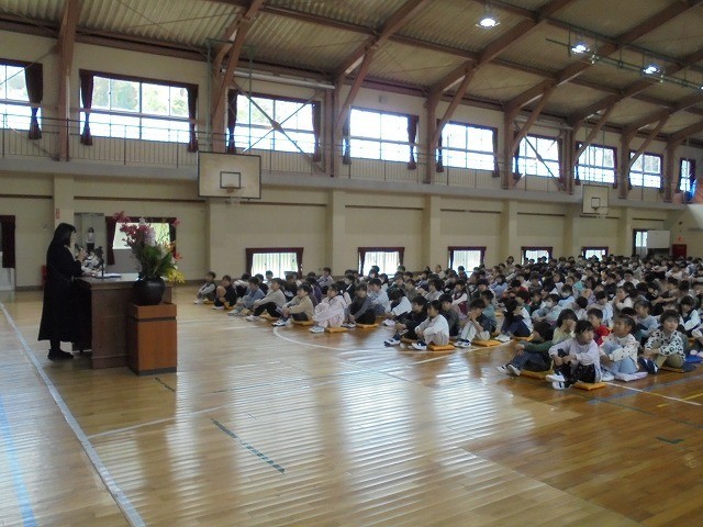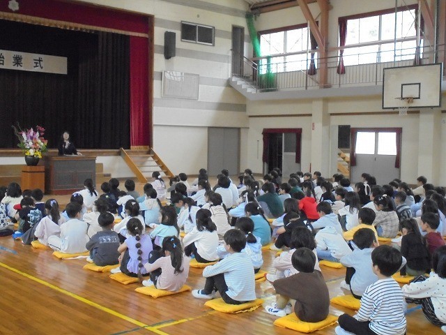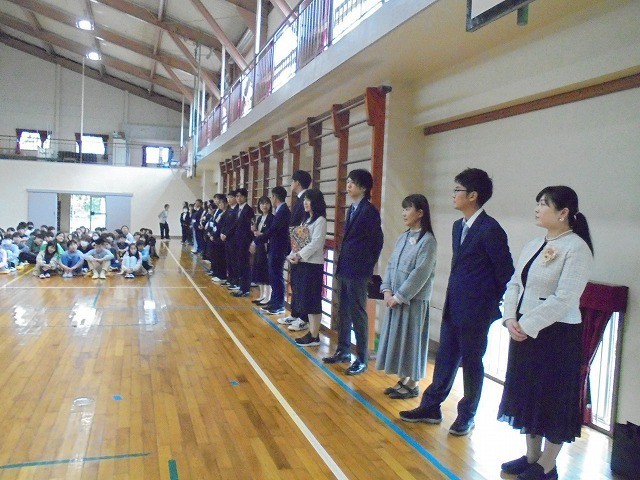 クラスを確認した後、体育館へ移動して着任式と始業式を行いました。校長先生のお話もよい姿勢でうなずきながら聞ける子供が多く、「しっかり話を聞くことができてすばらしい!」と褒めていただきました。また、校歌を4番まで歌い、新しく香貫小に来た先生方にも聞いていただくことができました。